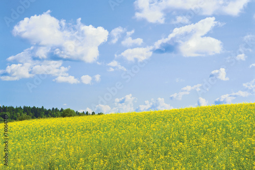 © andrew, Fototapeta premium Windy day. Rapeseed field on a hillside