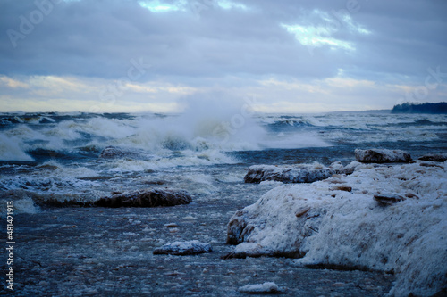 © Martins, Obraz premium windy storm on a baltic sea at winter with clouds in the sky