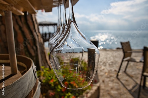 Obraz premium Wine bar sul lago di garda con bicchiere