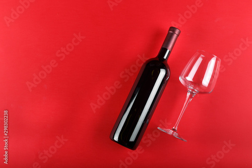 © alexshyripa, Fototapeta premium wine bottle and empty glass