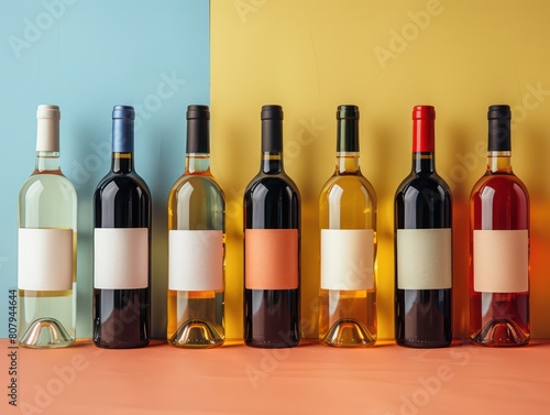 © MADGALLERY, Fototapeta premium wine bottles lined up with white labels
