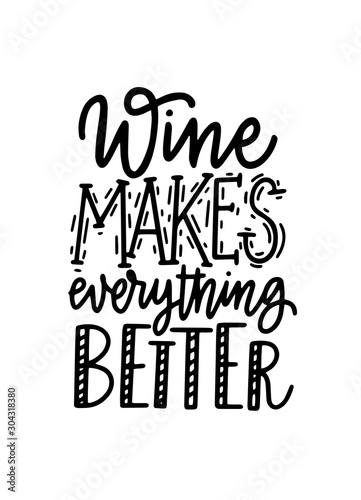 © yasnaten, Fototapeta premium Wine makes everything better lettering fun quote