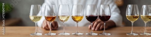 © Andrii Zastrozhnov, Naklejka premium Wine tasting event with diverse selection of red and white wines