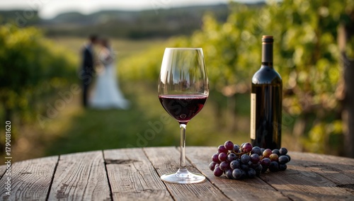 © The 2R Artificiality, Naklejka premium Wine Tasting Glass Set in a Vineyard, Ideal for Romantic Experiences