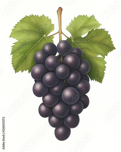 © kazitafahnizeer, Obraz premium Wine Tasting in Rustic Vineyards Vibrant illustration of dark grapes on vine.
