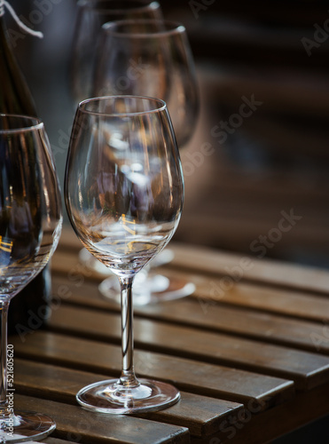 © KseniyaK, Obraz premium wine that is poured into glasses in the rays of the setting sun