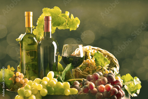 © pfpgroup, Fototapeta premium Wine with cask and vineyard