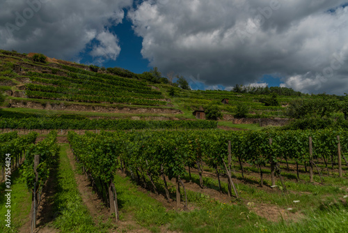 Fototapeta premium Wineyards over Krems an der Donau in summer sunny hot day