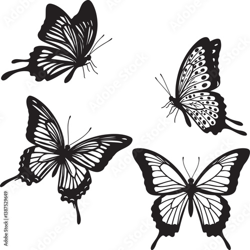Obraz premium wing, butterfly, fly, insect, silhouette, black, vector, animal, nature, symbol