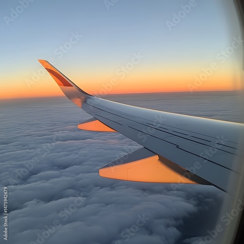 © MdShariful, Obraz premium Wing of an airplane from a window flying over sky