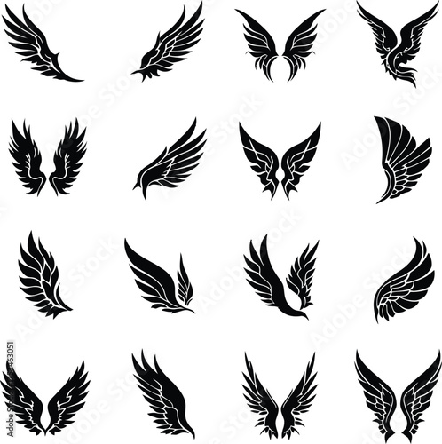 Fototapeta premium Wing Silhouette Grid Vector Featuring Symmetrical, Abstract, and Fantasy-Inspired Feather Designs in Black Line Art Style