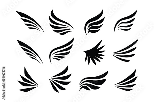 Fototapeta premium Wing Silhouette Vector Icons for Tattoo Design, Fantasy Illustration, and Decorative Art