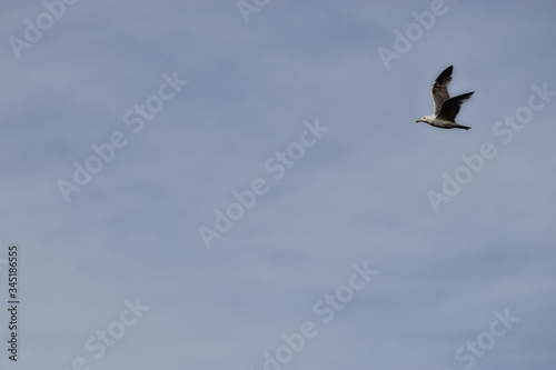 Fototapeta premium wing spread flying seagull bird in sky. background. copy space