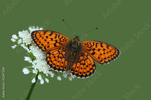 © cilicia, Obraz premium Wing upper-side view of Marbled Fritillary (Brenthis daphne) on a white flower