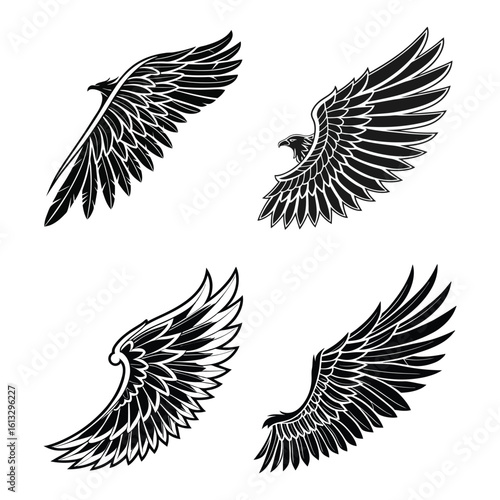 Obraz premium Wing Vector Bundle – 4 Stylized Wings Set