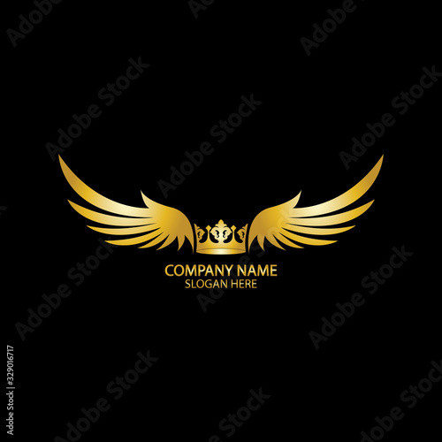 Obraz premium winged crown golden logo / vector illustration.