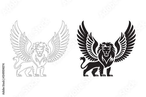 © MdMasudRana, Obraz premium Winged Lion Silhouette. Fully editable Flat and Outline.