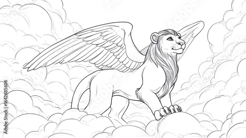 © kucret, Obraz premium Winged lion soaring amidst clouds