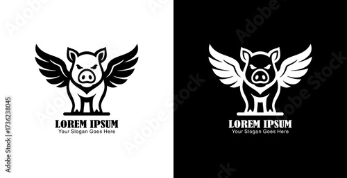 © Yohanes, Fototapeta premium Winged pig logo design with front view