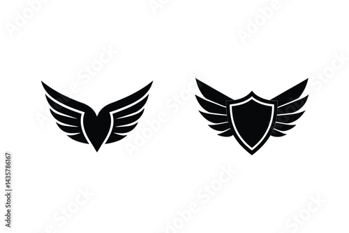 Obraz premium Winged Shield Black Vector Illustration For Emblem Logo Badge Design Elements