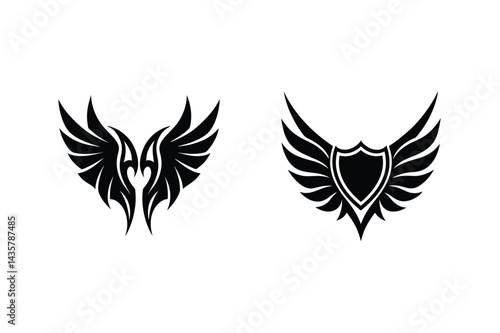 Obraz premium Winged Vector Graphics Set Featuring Abstract Wings And A Winged Shield