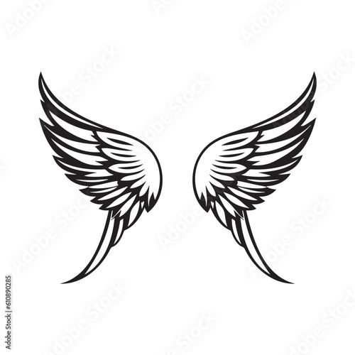 © magr80, Fototapeta premium Wings black and white vector icon.