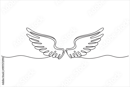 Obraz premium Wings drawn with a continuous line., Continuous one line drawing of angel wings vector illustration