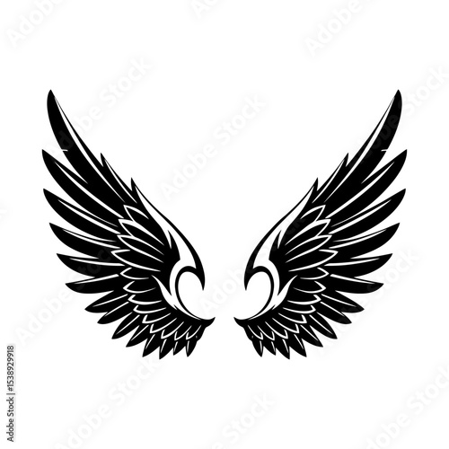© chekman, Obraz premium Wings icon. Black wings icons isolated on white background. Vector illustration.