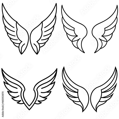 © AlMaruf, Fototapeta premium Wings Icon – Outline Vector Illustration of Bird or Angel Wings for Creative Design