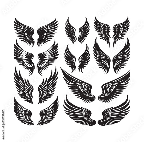 © MSTMIM, Obraz premium wings icon set Collection Vector illustration