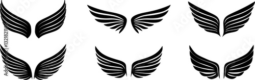 Fototapeta premium wings icon set, eagle wing, angel wings design element silhouette vector art...
