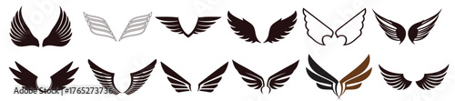 © Chomi, Obraz premium wings icon set vector illustration