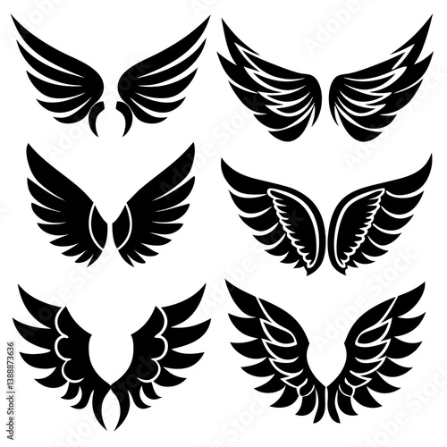 © MDSHOFIULAZAM, Obraz premium Wings Icons Set: Simple Vector Icons for Web Design & Graphics
