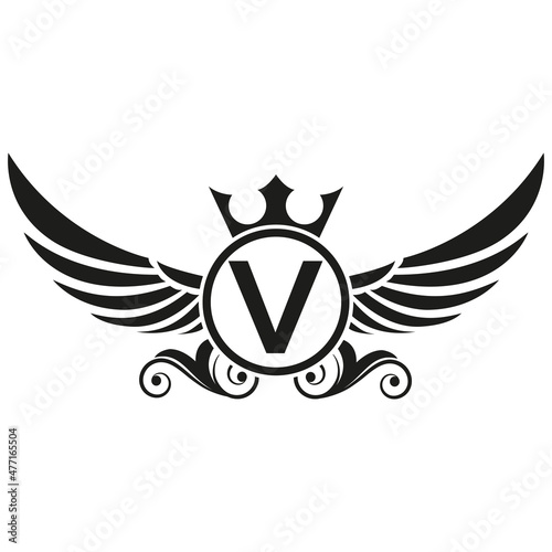© MdAtiqul, Fototapeta premium wings logo, Eagle Bird abstract Logo design vector And V Logotype, Transportation Concept