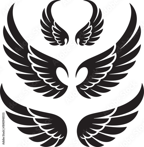 © Icon Stock, Fototapeta premium wings ornamental wing icons symmetrical feather silhouettes set