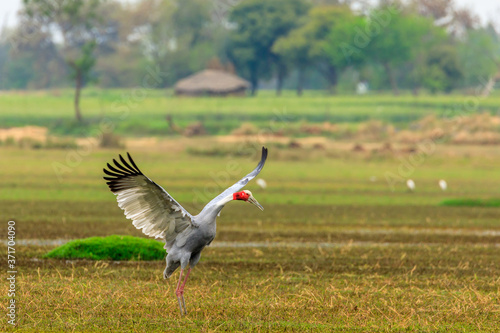 © Snapchitra, Fototapeta premium Wings spread of a Sarus Crain