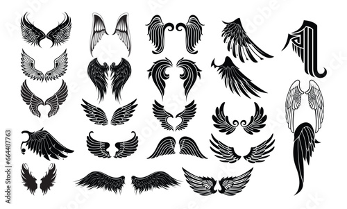 Naklejka premium Wings Vector bundle, Wings Clipart, Wings Silhouette, Wings Vector, Wings icons, illustration, design.