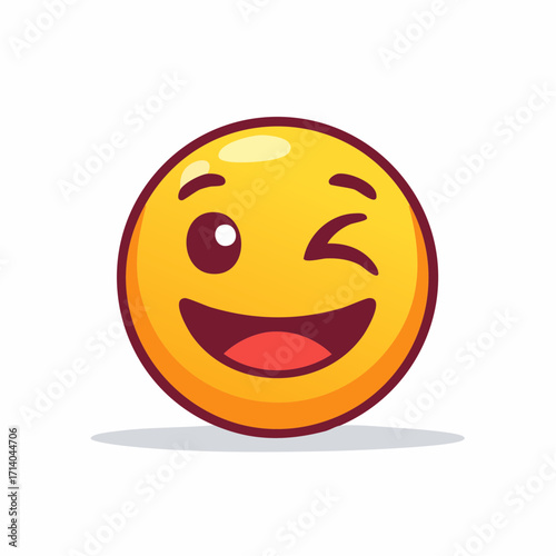 © Shin, Fototapeta premium Winking emoji with a bold outline and wide grin, expressing humor, joy, and playful digital interactions.