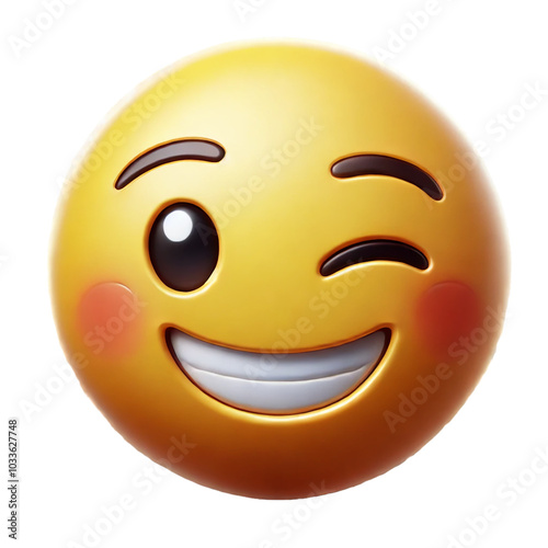 Fototapeta premium Winking Face 3D Emoji with Playful Expression on Transparent Background