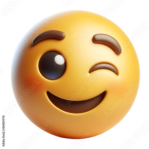 © Borneo, Fototapeta premium Winking face three-dimensional emoji isolated on transparent background