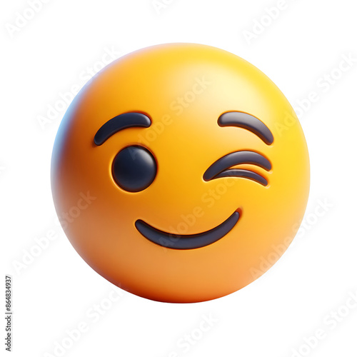 © Borneo, Fototapeta premium Winking face three-dimensional emoji isolated on transparent background