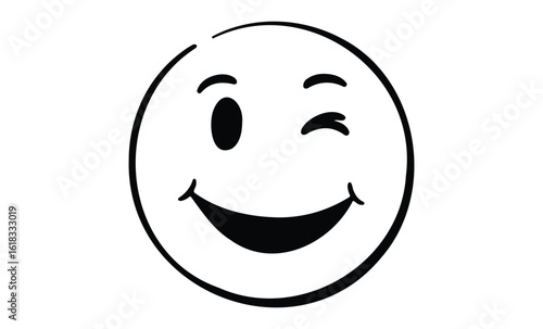 © Mr. Stocker, Fototapeta premium Winking smiley face emoticon with playful expression. Vector retro hand drawn illustration