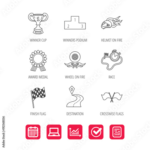 © tanyastock, Fototapeta premium Winner cup and award icons. Race flag signs.