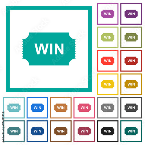 Fototapeta premium Winner ticket flat color icons with quadrant frames