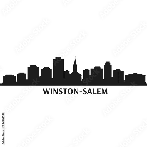 Fototapeta premium Winston Salem Skyline Black Silhouette White.