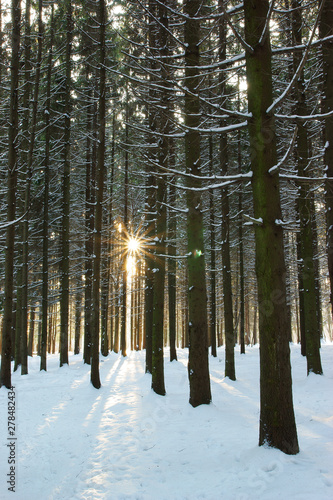 Fototapeta premium Winter and forest and sun rays