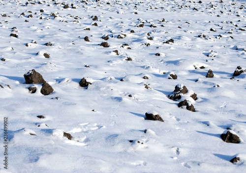 Obraz premium Winter arable land under a snowy white fur coat, plowed land