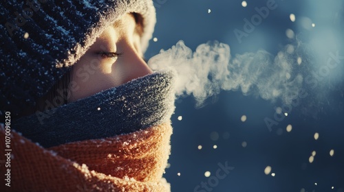 Fototapeta premium Winter asthma awareness a person in warm attire focuses on breathing comfort...