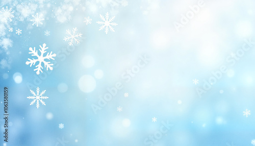 Fototapeta premium Winter background with falling snowflakes and a soft blue gradient