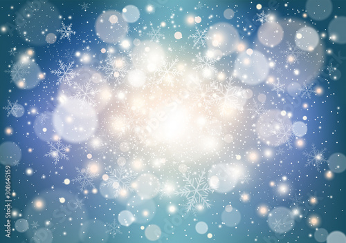 © bannosuke, Obraz premium Winter background with snowflakes and glitter